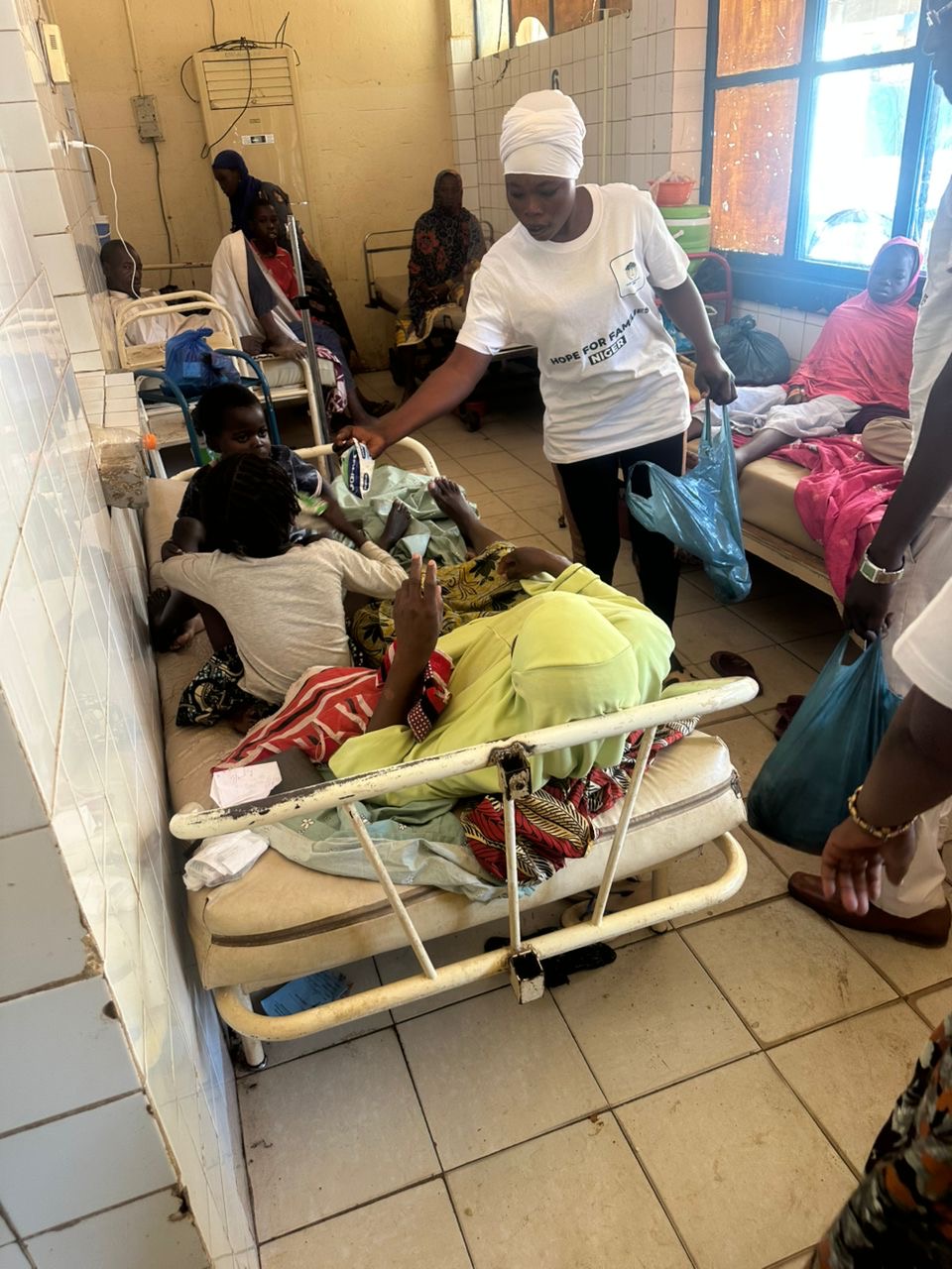 Distribution de repas à l'Hôpital National du Niger le 15/12/2025. Un moment de partage essentiel pour accompagner ceux qui traversent des épreuves.